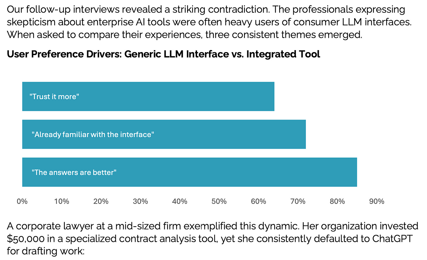 …but, by that same metric, standard LLM chatbots are highly successful, and partnerships with external vendors are quite successful.